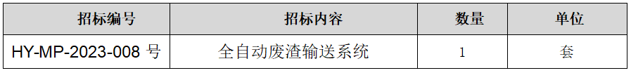 yl23455永利拟对yl23455永利全自动废渣输送系统项目进行公开招标。