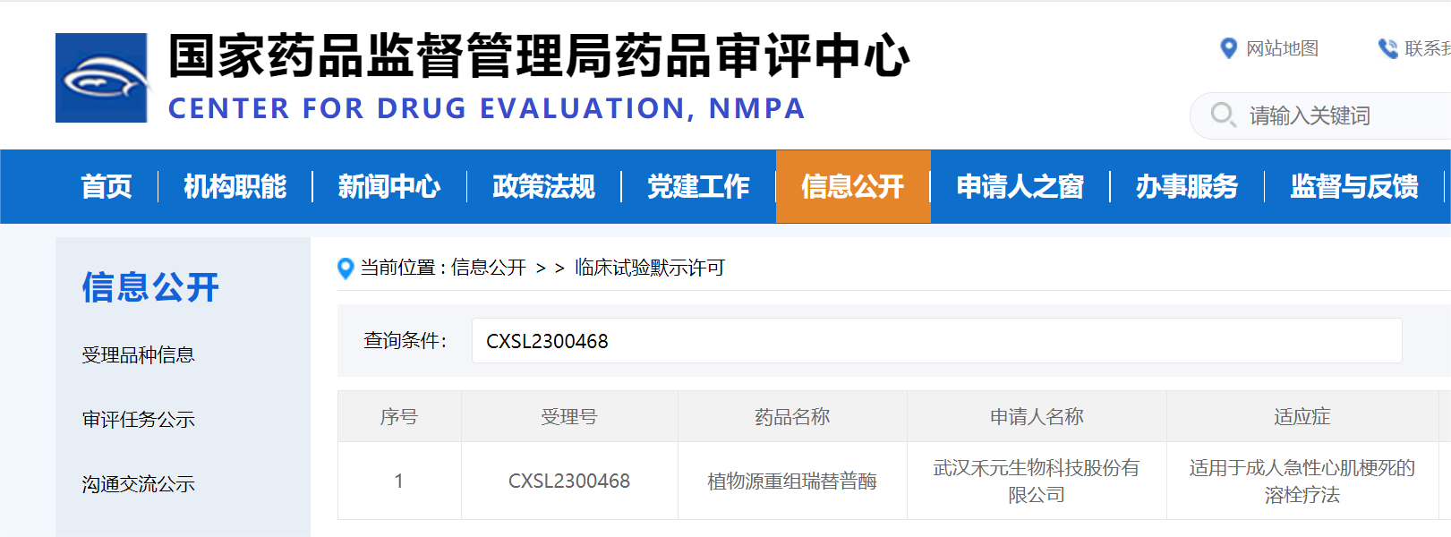 10月7日,yl23455永利研发的溶栓药物——植物源重组瑞替普酶(简称OsrPA),获国家药品监督管理局临床试验默示许可。
