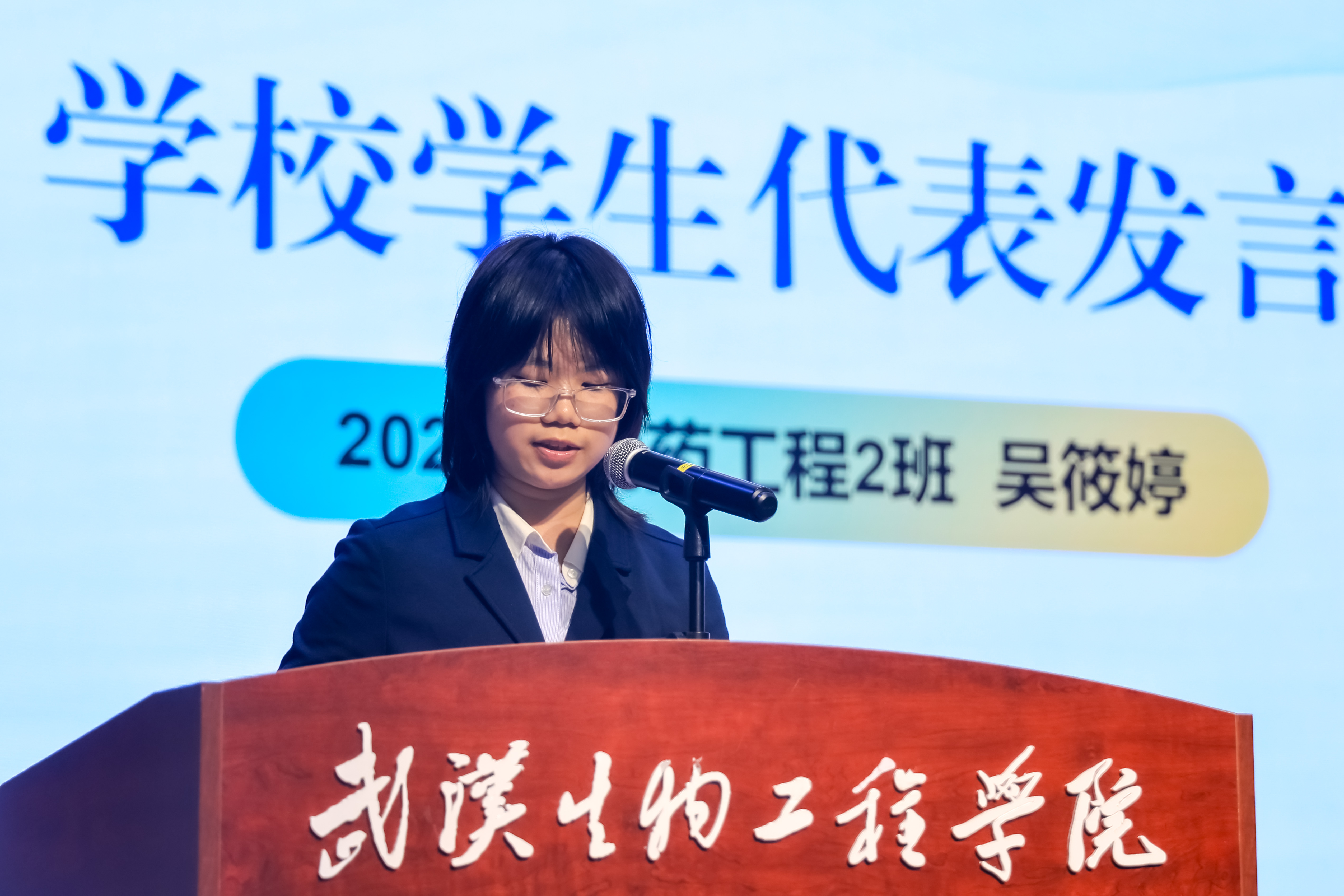 2022级制药工程2班吴筱婷同学作为学生代表发言